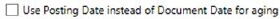 Check this flag to use the Posting Date of transactions to age transactions by in Microsoft Dynamics G. Posting Date is the actual date the transaction posted in Dynamics GP.