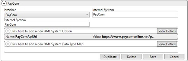 Select PayCom from the list of values defined within XML Interface Setup |