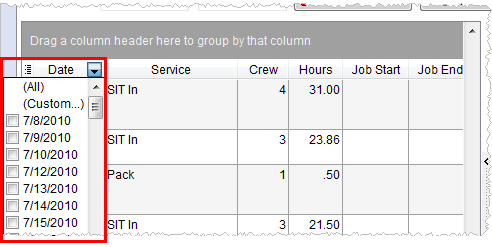 Additionally, users can opt to include (All) records in the display or open the Custom Filter (Custom…). If the particular data column allows for blank data, then the user will have the additional options to filter on (Blank) or (NonBlank) data.