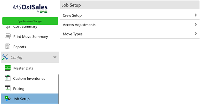 Job Setup is where you establish the work flow of the move. Customize the Crew, Adjustments, and set the Move Type with this tab.