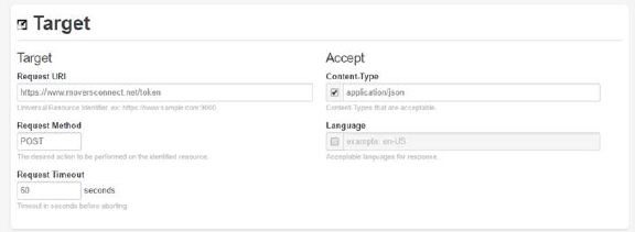Sample Target section from REST Console (Token Request):