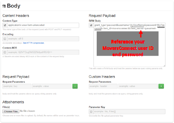 grant_type=password&username=MyUserName&password=MyPassword&client_id=moversconnect&client_secret=queuemein