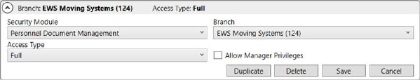 MoversSuite Administration > Personnel > Personnel Document Type Security