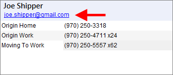 You can click on the shipper email to pull up a new mail window. The shipper email is available through the following:
