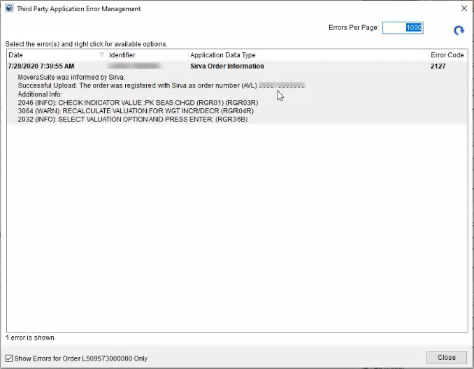 Once the process is finished, the final status can be seen using the Third Party Application Error Management screen.