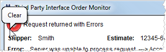 Users can clear the error from the screen by clicking on the status icon. This action clears the error listing from the screen. Users can reprocess the request through the Tools Menu.