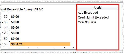 When viewing a customer, the alerts associated to that customer appear next to the aging graph in the Alerts pane.