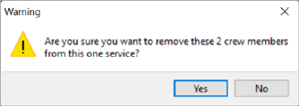 Remove Crew This function removes the select crew from the selected service or services. The user will receive a prompt requesting confirmation of the removal. |