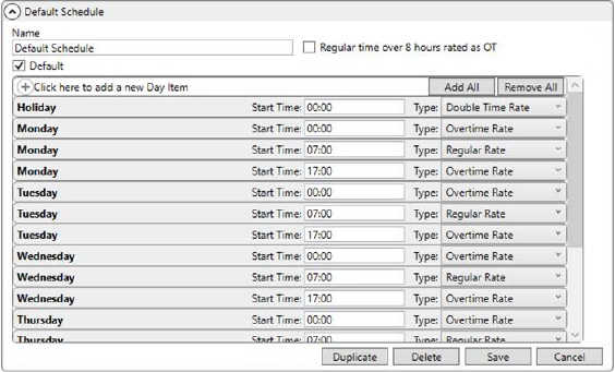 4. Establish a Rate Schedule for Labor (Rate Schedule for Labor and Holiday Setup)