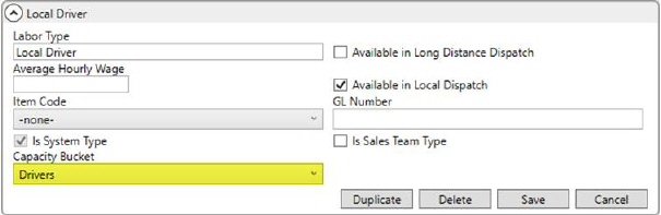 To be included in Capacity Planning, the Labor Type must have the Available in Local Dispatch flag checked.