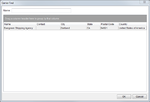 a carrier field by Name within the Shipping Information tab (available through