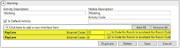 The following External Codes are currently supported by Crew Punch. Contact Crew Punch for a list of the latest supported codes. As in the example above (Figure 131), you can specify multiple External Code values for each activity.