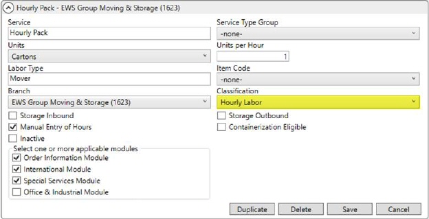 Crew activity links to a Local Service Type when activity is processed through the Enter Actuals function in Local Dispatch. Again, the Local Service Type is referenced along with the Authority, Type of Move, and Commodity settings on the order to determine the correct Position Code through the Local Service Classification GL Map Setup records.