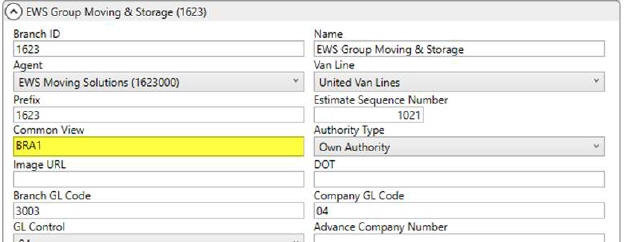 To establish a Dispatching Common View, set the Common View field to the same value for each branch you want on the same common view within Branch Setup. This value can be up to four characters in length.