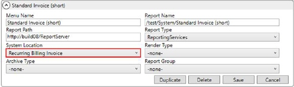 To generate invoices for Recurring Billing and Storage, update Report Profile Setup records to assign personnel to the report linked to the View Invoices button within Recurring Billing Management. This corresponds to the Report Setup record with a System Location of Recurring Billing Invoice.