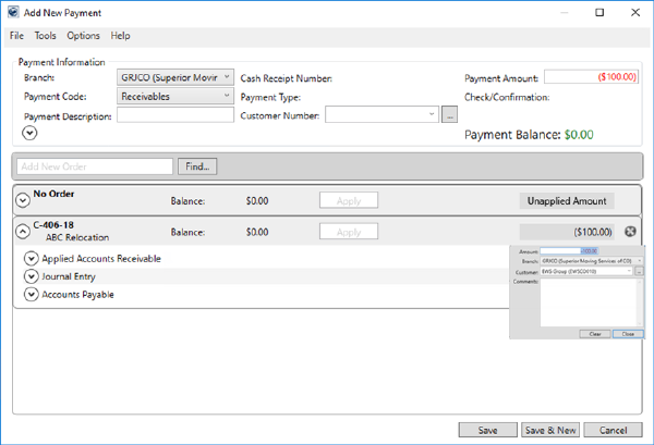 When a customer payment or vanline statement is generated in MoversSuite to the incorrect customer or order, the following outlines how to move the payment using Payment Management. This is the general concept.