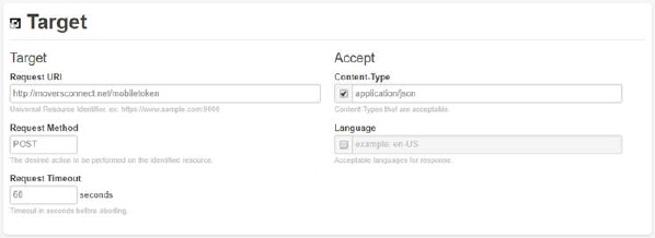The following examples illustrate the use of the Mobile Token request in JSON for each utilized section.