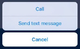 Tap on the email address evokes a new email message from your device. Tap on the phone number provides call or text options.