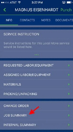 The Job Summary is a formatted document that you can generate through the Job Summary link within the Info screen from MSCrew.