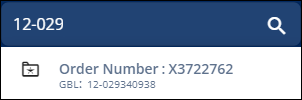 After entering three or more characters, the application produces a drop-down menu of orders matching your search criteria. Searches can use the entire number or can use a partial number; however, the search only looks for matches starting from the beginning of these fields. For example, if an Order Number is 2023-12312-566, a Quick Find entry using “2023” will locate the order but “1231” will not. Any search entered within the Quick Find will default to searching the Order Number, Container Number, GBL Number, and Invoice Number fields.