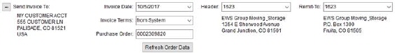 If changes are made to data that affects what displays on the invoice, such as changes to the shipper name and address, then you can use the Refresh Order Data feature to update data behind a draft invoice. For example, if you noticed that the address was incorrect while building an invoice, you can save it as a draft, make the address correction, open the draft invoice, and Refresh Order Data to pull in the address information. Note: Copy invoice does not refresh data. So, if you copy an invoice, you may find it useful to always perform the Refresh Order Data function.