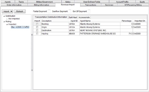 The ability to see the Revenue Import tab is controlled through the Van Line Revenue Import module assignment. View the Security Modules topic for more information.