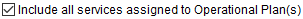 Include all services assigned to the Operational Plan(s) Check this flag to include all services for any Operational Plan record associated to the order in the send. This includes all services shown in the grid as well as any others on the order with a Local Service Status of Idle or Pending. | |
