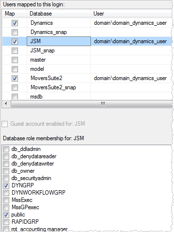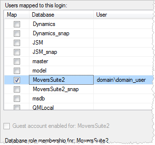 NOTE: If MoversSuite Administration or the MoversSuite queuing service is ran on machine other than the SQL server, then the machine account will need the MssExec role on MoversSuite2 database and the MssGPExec roll on the company-specific Dynamics GP database.