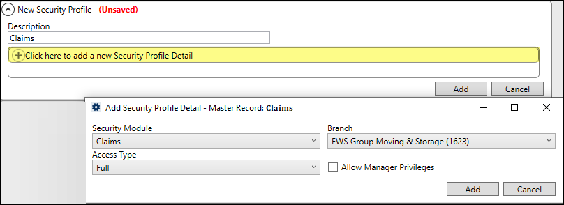 To add a Security Profile for Claims,