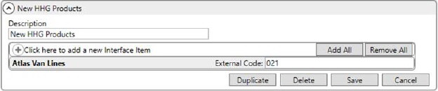 When this record is selected based on Description, the application links the record to External Codes specified for an interface. The application uses these mappings to identify supported codes between shared systems. | |