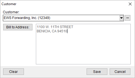 Clear Selecting Clear will remove the selections made for Customer and Bill To Address. |