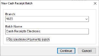 6. If the new ‘Is Electronic Payments Batch’ checkbox is NOT checked, then the cash receipts module continues as it has in the past by letting the user add a new cash receipt to the new batch.