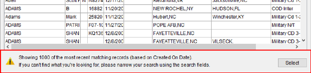 Figure 9: Find warning upon reaching 1,000 records in the search