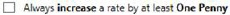 This checkbox changes according to what is set under Change By and Rounding.  For example, if Change By is Percentage (-), and Rounding is set to Nickel, then the checkbox would read: Always decrease a rate by at least One Nickel.