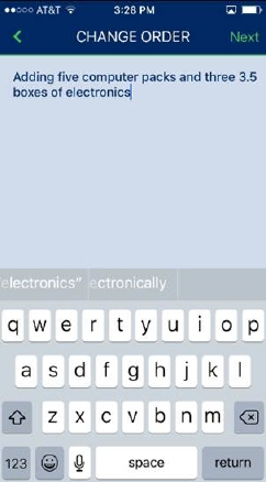 Pressing Change Order opens a prompt for you to enter the changes to be made to the service.