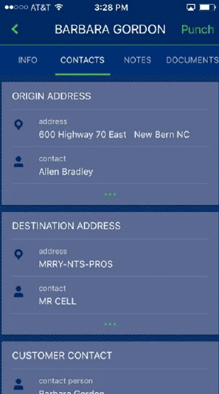 The title features the shipper name along with the ability to Punch into an activity for the job. In Figure 18, the shipper name is Barbara Gordon.