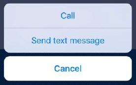 Tap on the email address evokes a new email message from your device. Tap on the phone number provides call or text options.