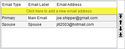Use these arrow keys to sort the email records entered in the grid. | |||||||||||||||||||||