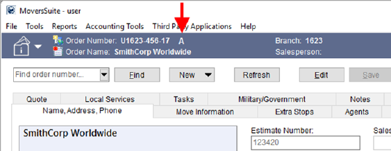 The Order Number is a unique identifier to track all order requests in MoversSuite, including those that originate from a disparate system. It is an integral part of tracking, reporting, accounting, invoicing, dispatching, and other functions within MoversSuite. The Order Number displays throughout the application in screens, dialogs, tabs, etc. It prominently displays within the Information Bar section.