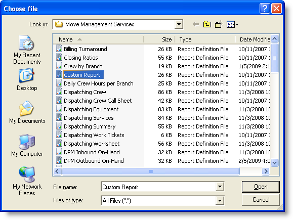 Reports loaded into the report server will be accessible to MoversSuite.  Refer to the Reports Setup and Administration section to understand how to link a Reporting Services report to a MoversSuite menu item.