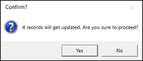 This field is outlined in red as it is a required field. Also, a confirmation warning will appear after clicking Save to confirm the save and indicate how many records will be updated.