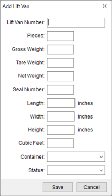 Described in the following table are the fields and functions available within the Add Lift Van screen.