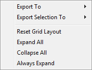 Export To Export the contents of the grid to view and manage through an external application, such as Microsoft Excel. Refer to the Export To topic for details.