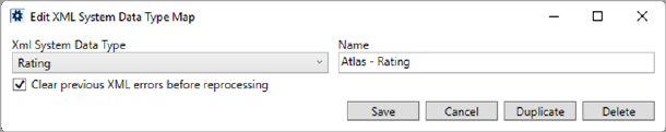 Create a mapping for Atlas - Rating linked to the Xml System Data Type Map of Rating. This defines the process to support an Atlas Revenue Import.