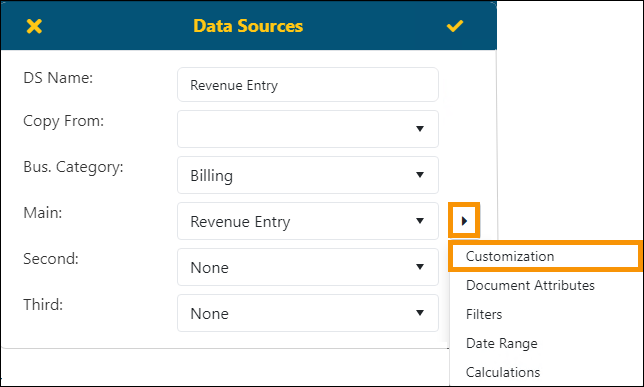 Setup Area: BI Tool Data Sources > Main, Second or Third > Customization