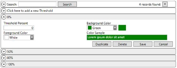 Establish color indicator tiers for the % of Capacity Used buckets to fall into for Capacity Planning within this setup. Customize the percentage levels and their corresponding colors. Percentage levels start from 0 to any high limit you decide for your organization.