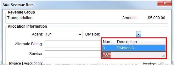 If no Division is set for the agent, then the Division set through Order Information (Revenue Entry) is used