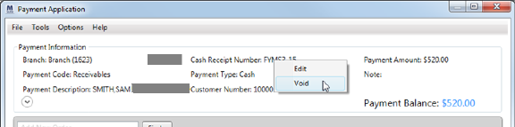 Right-click on the Cash Receipt Number. This produces the option to Edit or Void the cash receipt.