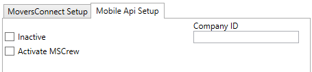 MoversSuite Administration > MoversConnect > MoversConnect > Mobile Api Setup tab