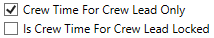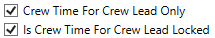 Activate Crew Time If this flag is not checked, the “Is Crew Time Locked” and the “Crew Time For Crew Lead Only” flags will not be available.